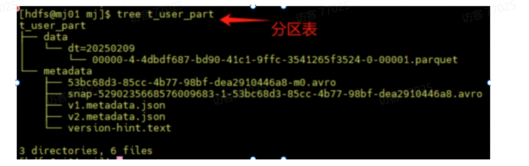 SELECT * FROM ice_spark_hdfs.mj.t_user_part_hidden VERSION AS OF 'year-1';- 元数据查询