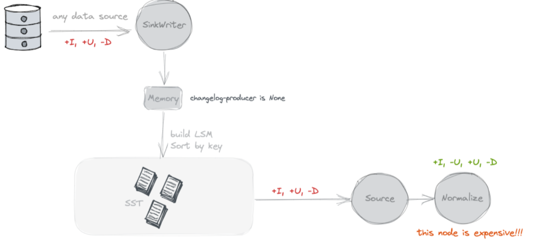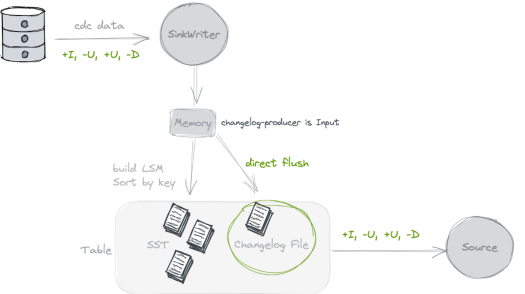 Paimon主键表会直接将输入的消息作为变更数据传递给下游消费者。输入数据流本身是完整的变更数据时(例如数据库的Binlog)使用。input机制不涉及额外的计算,因此其效率最高。
