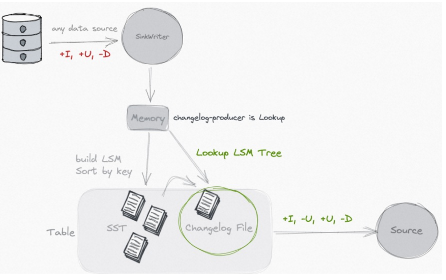 lookup模式下,变更数据过来之后,会查找旧值,compact之后生成新的数据文件。