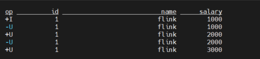 SET 'sql-client.execution.result-mode' = 'changelog';